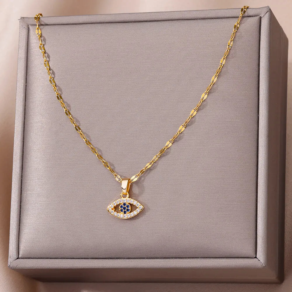 Fashion Evil Eye Necklace For Women Stainless Steel Gold Color Evil Eye Pendant Necklaces Lucky Aesthetic Turkish Jewelry femme