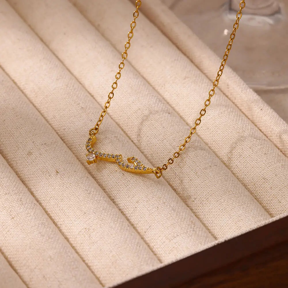 Fashion Zircon Arabic Necklaces For Women Gold Color Stainless Steel Arabic Love Statement Pendant Necklace Wedding Jewelry Gift