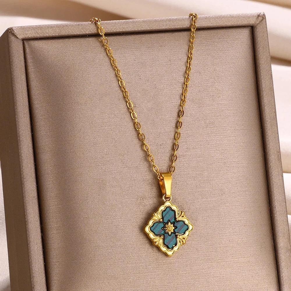 • Luck Clover Pendant Necklaces For Women Gold Color Chain Moon Stainless Steel Necklace Square Cross Jewelry Christmas Gift