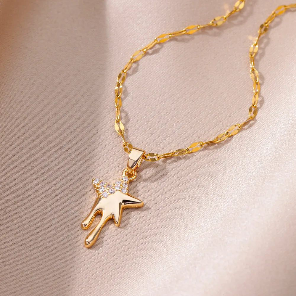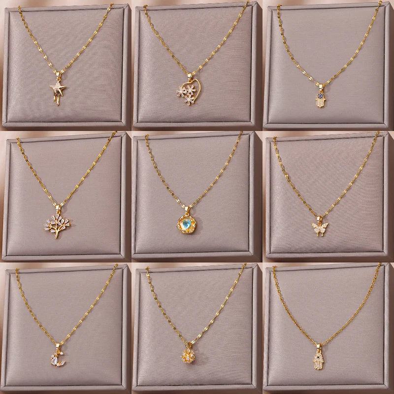 Zircon Heart Necklaces For Women Stainless Steel Chain Choker Gold Color Hollow Knight Necklace Fashion Luxury Designer Jewelry